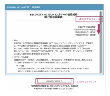 使用規約に同意してアカウント登録を進め、SECURITY ACTIONアカウント登録が完了したら